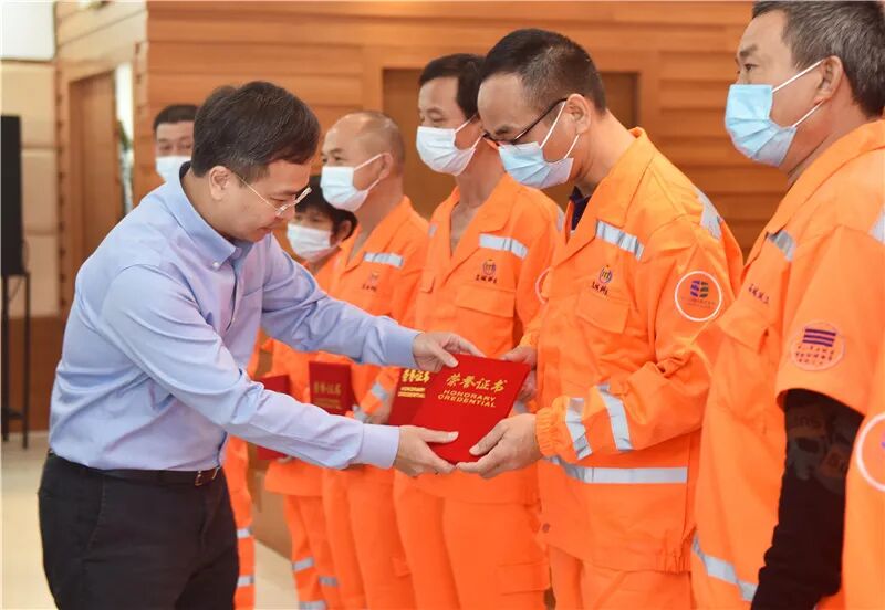 26日,中山举行以“关爱环卫工人,共建文明中山”为主题的庆祝广东省第二十八届环卫工人节暨慰问环卫、市政和园林工人座谈会。“突出贡献环卫工人”和“优秀环卫工人”代表分别上台领取了荣誉证书和奖金。